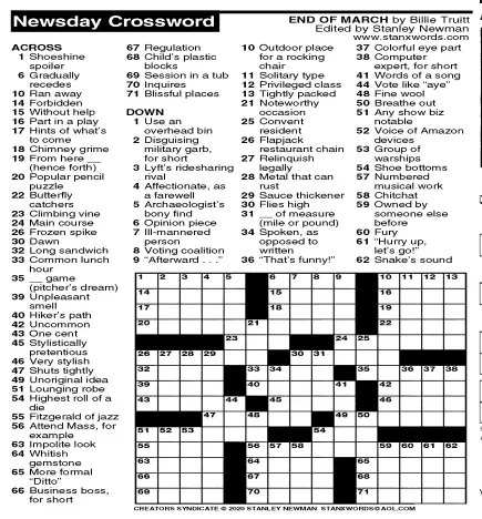 Designated money crossword clue - Puzzle Page Answers Pretentiously elegant one crossword clue ... Time periods covered in history textbooks crossword clue; One of the original colors on a Rubik's Cube crossword clue; Bill ___ the Science Guy crossword clue; Body part that controls the sense of balance crossword clue Pretentiously elegant one - LATimesCrosswordAnswers.com December 7, 2021 - At our site you will find all Pretentiously elegant one crossword clue answers and solutions. All LA Times Daily Crossword Answers updated everyday! Pretentiously elegant one Crossword Clue December 8, 2021 - Tired of thinking? We have 1 answer⁄s for the clue 'Pretentiously elegant one' recently published by 'L.A. Times Daily'
