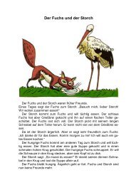 PDF Der Wolf und der Kranich - Eine Fabel von Aesop Der Wolf und der Kranich - Eine Fabel von Aesop Ein Wolf hatte ein Schaf erbeutet und verschlang es so gierig, dass ihm ein Knochen im Rachen stecken blieb. In seiner Not setzte er demjenigen eine große Belohnung aus, der ihn von dieser Beschwerde befreien würde. Der Kranich kam als Helfer herbei; glücklich