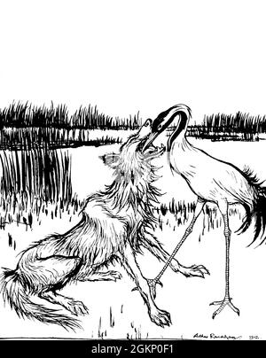 Der Wolf und der Kranich (von Aesop) - blueprints Der Wolf und der Kranich (von Aesop) Ein Wolf hatte ein Schaf erbeutet und verschlang es so gierig, dass ihm ein Knochen im Rachen stecken blieb. In seiner Not setzte er demjenigen eine große Belohnung aus, der ihn von dieser Beschwerde befreien würde.