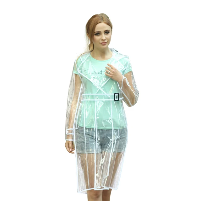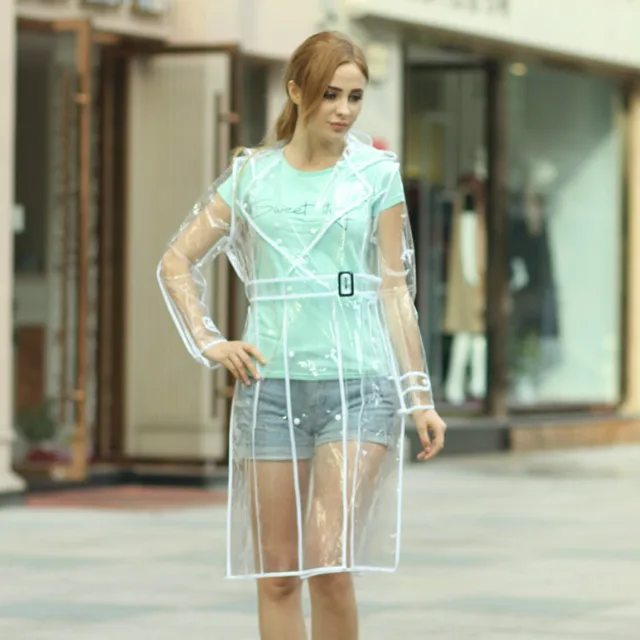 Di modo di EVA Impermeabile Trasparente Con Cintura Lungo Cappotto di Pioggia Delle Donne Giacca Impermeabile Giacca A Vento Con Cappuccio Poncho All'aperto Impermeabili