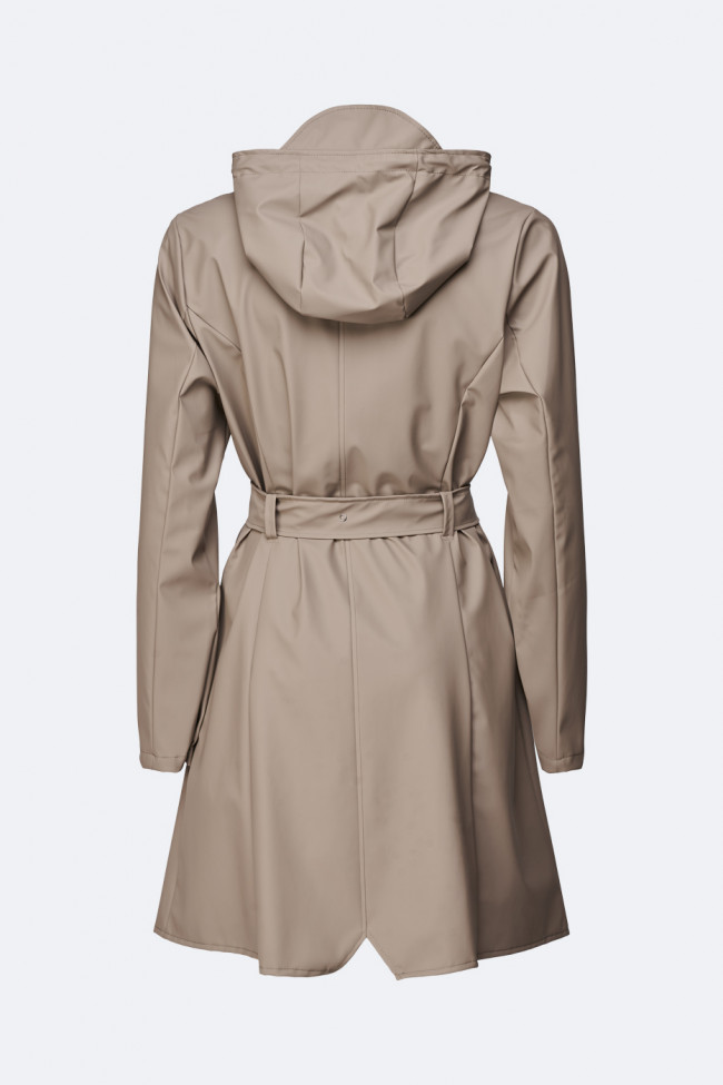 Curve Jacket color taupe modello a trench impermeabile in tessuto opaco con cappuccio e cintura in vita