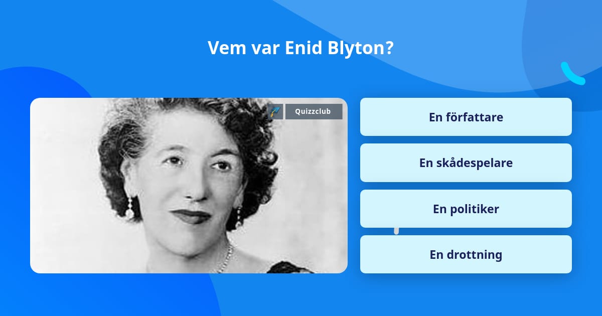 Blyton som skrev. Vilka är namnen på böcker skrivna av enid blyton? / davidchita.com Enid blyton skrev alla böcker mellan 1941-1963i beställa av deras publiceringsår är de-Fem på en Skattkammarön (1942)Fem gå äventyr igen (1943)Fem Run Away tillsammans (1944)Fem gå till Smuggler's Top (1945)Fem gå ut i en husvagn (1946)Fem på Kirrin Vem skrev enid blyton böcker? Enid BlytonEnid Blyton såklart! EOF boklyckan.blogspot.com › 2012 › 07Boklyckan: Enid Blyton Enid Blyton var en mycket produktiv författare. Hon skrev över 600 böcker med ungdoms- och barnberättelser, läroböcker, kristna berättelser, poesi med mera. 1927-1959 skrev hon hela innehållet för tre olika tidningar, totalt 964 nummer. När hon var som mest produktiv kunde hon skriva 10 000 ord per dag, det vill säga en hel bok på fem dagar. Enid Blyton bøger | Bøger skrevet af Enid Blyton Den britiske børnebogsforfatter Enid Blyton (1897-1968) har udgivet mere end 600 titler og er oversat til mere end 100 sprog. Blandt udgivelserne tæller børne- og ungdomsbøger, noveller, digtsamlinger, lærebøger og skuespil.