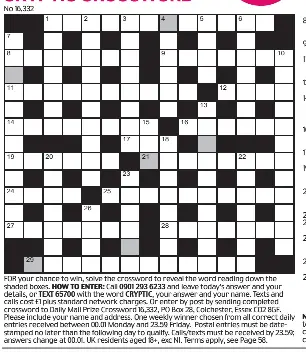 CRYPTIC CROSSWORD - PressReader CRYPTIC CROSSWORD. 2022-06-14 -. FOR your chance to win, solve the crossword to reveal the word reading down the shaded boxes. HOW TO ENTER: Call 0901 293 6233 and leave today's answer and your details, or TEXT 65700 with the word CRYPTIC, your answer and your name. Texts and calls cost £1 plus standard network charges.